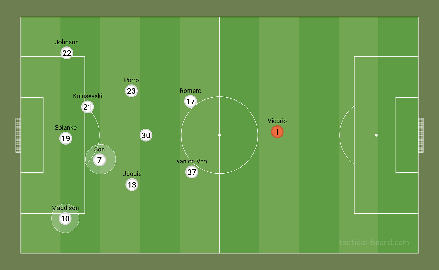 Another tweak made was having Son and Maddison way closer to the penalty box, and swapping the two’s positions on the pitch. It looked a bit something like this—
